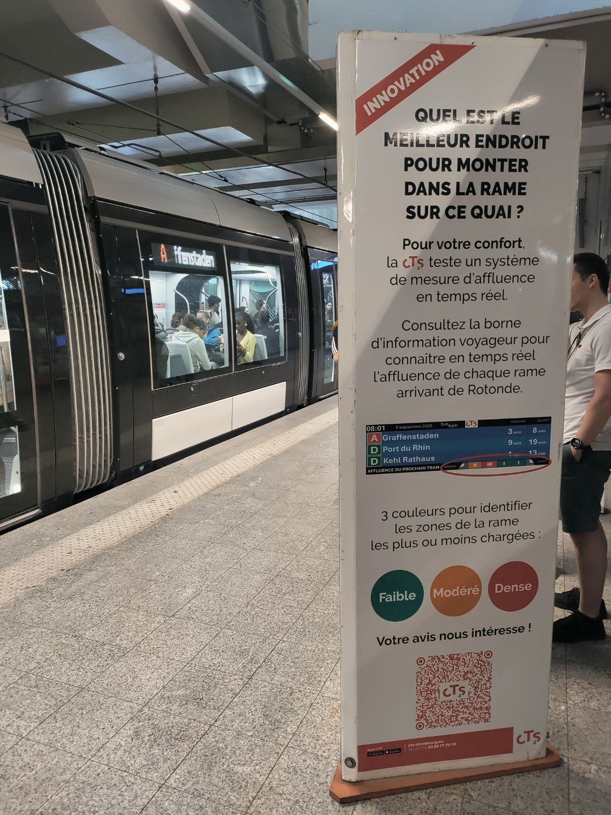 La CTS et la start-up Affluences expérimentent depuis 2014 une solution innovante de mesure en temps réel de l'occupation des tramways grâce à l'intelligence artificielle.