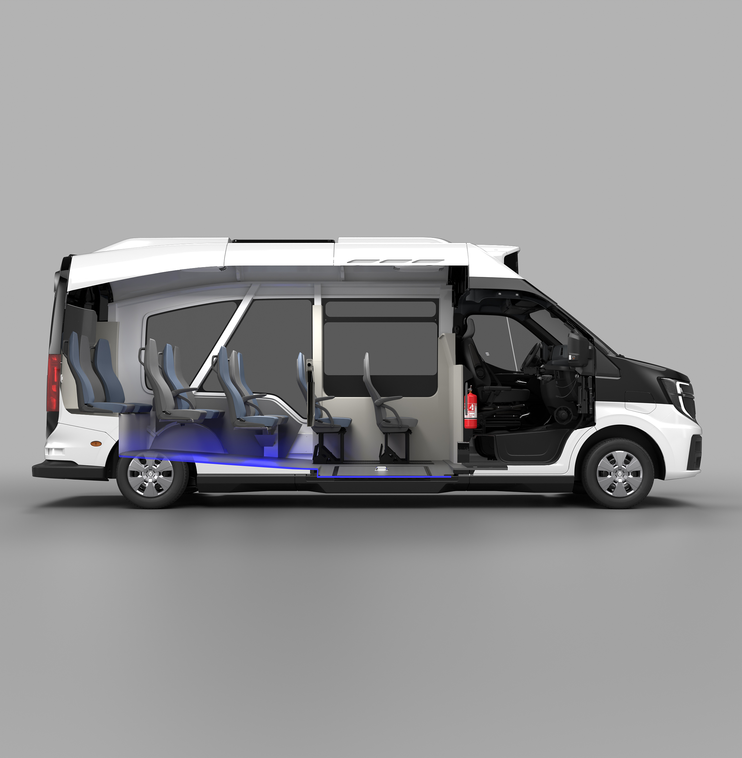 Basées sur la plateforme Renault Master, ces solutions intègrent une architecture à plancher bas intégral, unique sur le marché, garantissant une accessibilité facilitée pour tous les passagers, y compris les personnes à mobilité réduite. Elles disposent d’une chaîne de traction électrique Renault de dernière génération, d’une batterie de 87 kWh utiles et offrent une autonomie comprise entre 200 et 350 km selon la version.